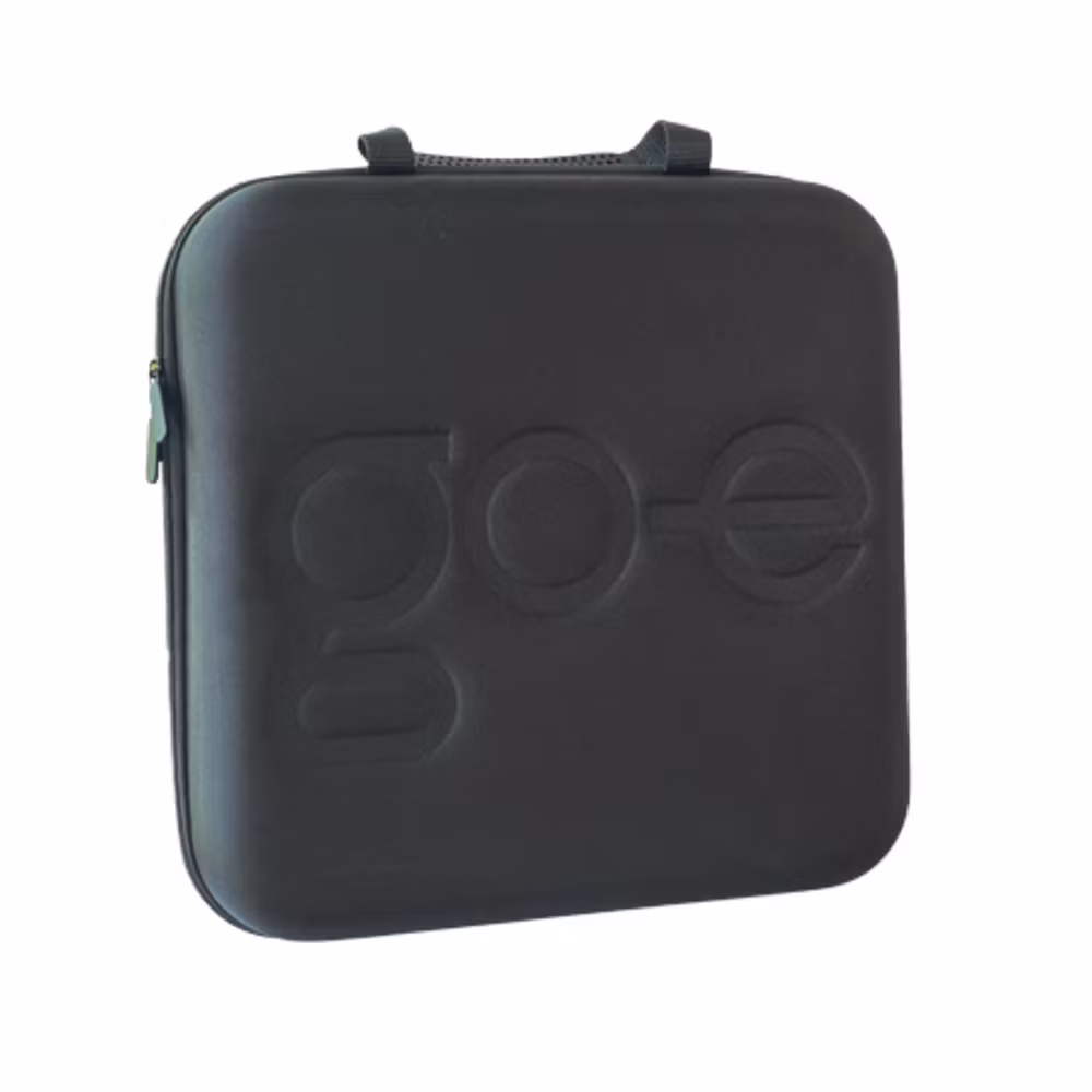 Med go-e Taske kan du nemt tage dit opladningsudstyr med dig overalt og holde det sikkert og beskyttet i bilen. Rejs med stil og sikkerhed med go-e Taske!