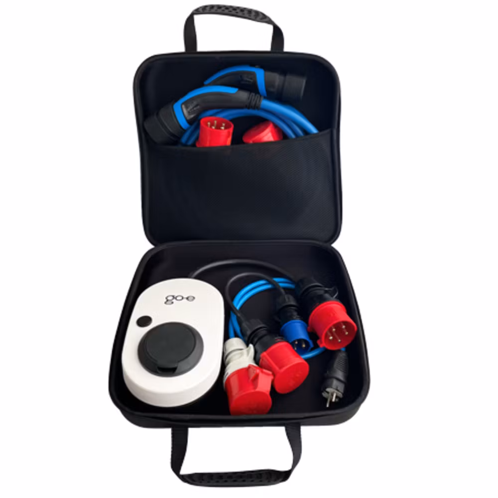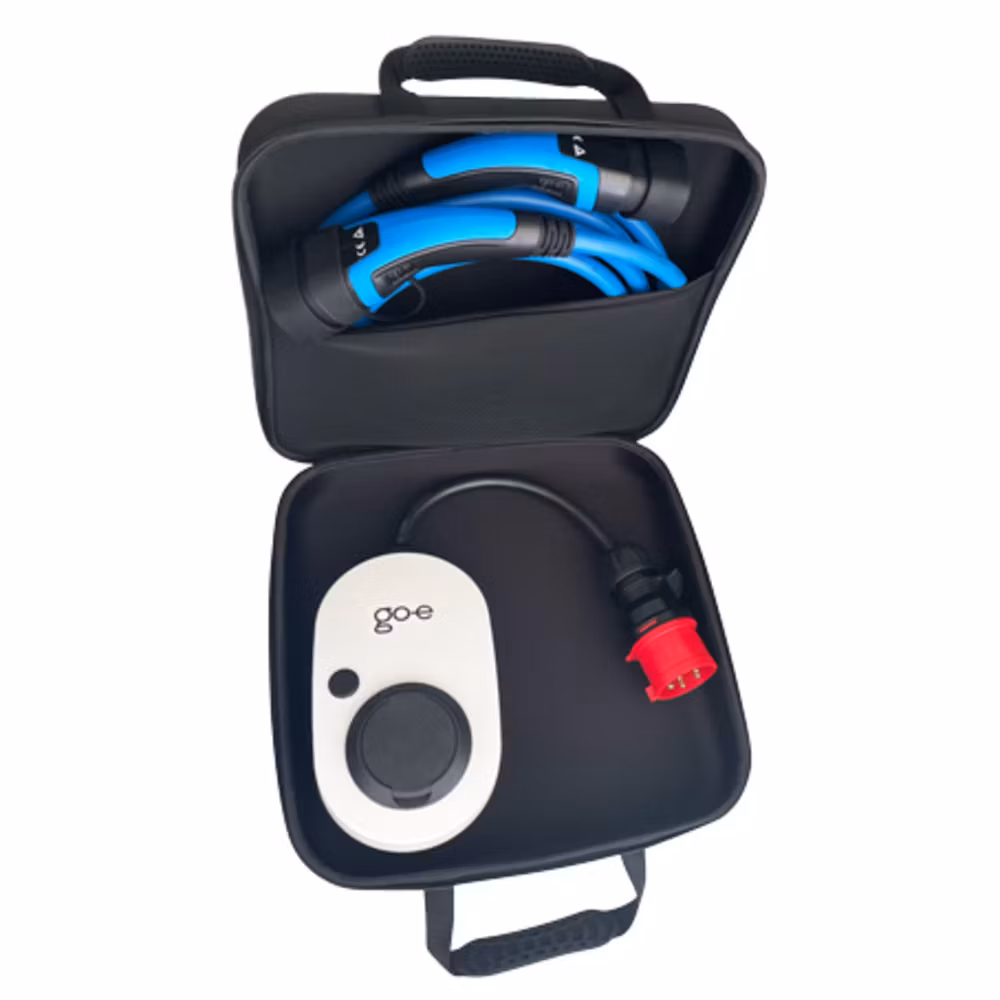 Uanset om du bruger go-e Charger Gemini Flex, Gemini Flex 2.0, go-eCharger HOME+, et adaptersæt eller et Type 2-ladekabel, har alt sin plads i go-e Tasken. Den robuste taske med to indvendige rum, adskilt af et net, beskytter og organiserer dit opladningsudstyr under transport.